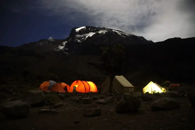 Today’s trek continues through the heather and moorland zone. As the landscape opens up, you’ll enjoy expansive views of Kibo and Shira peaks. You’ll arrive at Shira Camp, located on a rocky plateau with incredible sunset vistas and a clear view of the summit peak ahead.